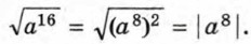 Так как а8 ≥ 0 при любом а, то |а8| = а8. Итак, √а16 = а8. Пример 2. Преобразуем выражение √х10, где х < 0.