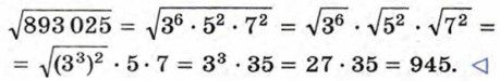 Равенство (1) является тождеством. Это тождество применяется при извлечении квадратного корня из степени с чётным показателем. Чтобы извлечь корень из степени с чётным показателем, достаточно представить подкоренное выражение в виде квадрата некоторого выражения и воспользоваться тождеством (1). Пример 1. Упростим выражение