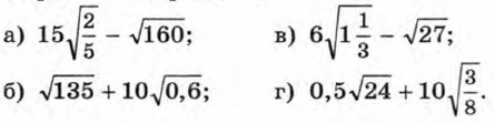 при 0 ≤ b ≤ 49 не зависит от b. Ответы490. а) |а|√15; б) 21x2√3; в) 0,5х√6x; г) 3а2√а; д)3a|a|√2b; e)-4m3√3a. 493. б) х + √ху; г) m√n - n√m; е) 3a - √ab - 2b; з) 6x-5x√2. 494. в) m√m - n√n; г) x3 + y√y. 497. в) 2; 501. 2. 502. 503. 505. 506. 507. 508. При х = 0. 509. а) -√10; б) 5√15; в) √3; г) 3.5√6. 510.