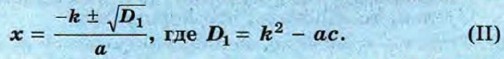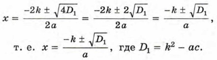 Значит, если квадратное уравнение имеет вид ах2 + 2kx + с = 0, то при D1 ≥ 0 его корни могут быть найдены по формуле