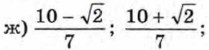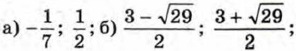 Ответы534. 535. 536. а) 0,2; 2; б) -6; 2,5; 537. а) При х = 5 и x = 6; 538. а) При x = 2 и х = 9; б) при х = 0,5 и х = 2. 539. 540. 541. 542. а) -0,2; 2; б) -7; 2; 6 в) 3 - 3√2; 3 + 3√2; г) -4; 5; д) 16; 36; 543. а) 1; 25; 544. а)-0,2; 1,7; 545. а)-8; 3; 546. а) -1; 23; 547. а) x1 ≈ -0,36, x2 ≈ 0,56; б) x1 ≈ -2,78, х2 ≈ -0,72; в) у1 ≈ -1,26, у2 ≈ 1,59; г) у1 ≈ -9,20, у2 ≈ 1,20. 550. а) х1 ≈ 1,35, х2 ≈ 6,65; б) у1 ≈ 0,78, у2 ≈ 3,22. 551. 552. а) 7; б) 0,6; 2; 555. а) Не существует; б) не существует; в) а — любое число 556. 7,5. 557. а) √3 + √2; б) 2 + 3√5.
