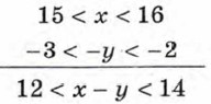 § 10. Числовые неравенства и их свойства Сложение и умножение числовых неравенств (продолжение)2. Оценим разность х - у. Для этого представим разность х - у в виде суммы х + (-у). Сначала оценим выражение -у. Так как 2 < у < 3, то -2 > -у > -3, т. е. -3 < -у < -2. Применим теперь теорему о почленном сложении неравенств: