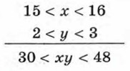 3. Оценим произведение ху. Так как каждое из чисел х и у заключено между положительными числами, то они также являются положительными числами. Применив теорему о почленном умножении неравенств, получим