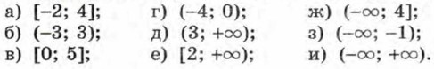 818. Какие из чисел -1,6; -1,5; -1; 0; 3; 5,1; 6,5 принадлежат промежутку: а) [-1,5; 6,5]; б) (3; +∞); в) (-∞; -1]? 819. Принадлежит ли интервалу (1,5; 2,4) число: a) √2; б) √3; в) √5; г) √6? 820. Укажите все дроби вида 821. Какие целые числа принадлежат промежутку: а) (-4; 3); б) [-3; 5]?