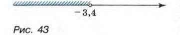 Множество решений данного неравенства представляет собой открытый числовой луч (-∞; -3,4), изображённый на рисунке 43. Ответ: (-∞;-3,4).