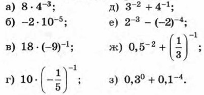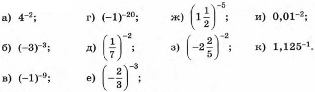 971. Сравните с нулём значение степени: а) 9-5; б) 2,б-4; в) (-7,1)-6; г) (-3,9)-3. 972. Верно ли, что: а) если а > 0 и n — целое число, то аn > 0;