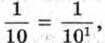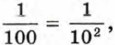 В строке (2) справа от числа 100 показатель каждой степени на 1 меньше показателя следующей за ней степени. Распространяя этот закон на числа, стоящие слева от числа 100, их записывают в виде степени числа 10 с отрицательным показателем. Вместо пишут 10-1, вместо пишут 10-2, вместо пишут 10-3 и т. д. Получают