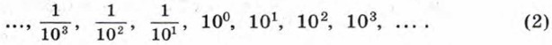 ..., 10-3, 10-2, 10-1, 100, 101,102, 103, ... .