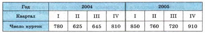 1050. В таблице показано, сколько курток изготовила мастерская за каждый квартал 2004 и 2005 гг.