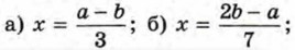 130. Первые 30 км велосипедист ехал со скоростью υ км/ч, а остальные 17 км — со скоростью, на 2 км/ч большей. Сколько времени t (ч) затратил велосипедист на весь путь? Найдите t, если: a) υ = 15; б) υ = 18. 131. Выразите х через а и b: а) 3х + b = а; б) b - 7х = а - b;