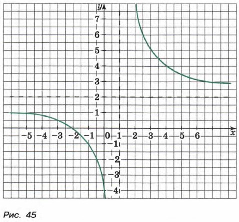 Отметив в координатной плоскости точки, координаты которых помещены в первой таблице, и соединив их плавной непрерывной линией, получим одну ветвь гиперболы. Используя вторую таблицу, получим вторую ветвь гиперболы. График функции