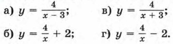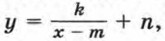 183. Покажите схематически, как расположен график функции а) m > 0, n < 0; б) m < 0, n > 0. 184. Постройте график функции 185. Укажите функции, графиками которых являются гиперболы.