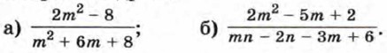 225. Зная, что m — целое число, найдите целые корни трехчлена mх2 + (m - 3)x - 3. 226. Зная, что коэффициенты квадратного трехчлена (n - 3)х2 + (n + 1)х + 9 - 2n — натуральные числа, найдите этот трехчлен. 227. Сократите дробь: