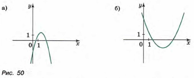 248. По графику функции у = ах2 + bх + с (рис. 50, а, б) определите знаки коэффициентов а, b и с. Ответы229. а) При а = -0,28; б) при а = 3; в) при а = -2; г) при а = 0,001. 238. а) При с > 13; б) при с > 8. 239. При b = -12, с = 24. 240. При а = 2. 241. При а > 0 и с ≤ 0; при а < 0 и с ≥ 0. 242. При а = -6 и b = 26.