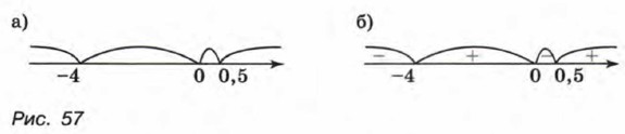 -х(х - 0,5 )(л; + 4) < 0, отсюда х(х - 0,5)(x + 4) > 0. Мы получили неравенство вида (1), равносильное данному. Отметим на координатной прямой нули функции ƒ(x) = х(х - 0,5)(x + 4)