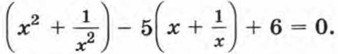 Метод введения новой переменной находит применение при решении возвратных уравнений. Возвратным уравнением называется уравнение вида а0хn + а1хn - 1 + ... + аn - 1х + аn = 0, в котором коэффициенты членов уравнения, одинаково отстоящих от начала и конца, равны, т. е. аk = аn - k, где k = 0, 1, 2, ..., n. Рассмотрим пример решения возвратного уравнения четвертой степени. Пример 3. Решим уравнение х4 - 5х3 + 6х2 - 5х + 1 = 0.