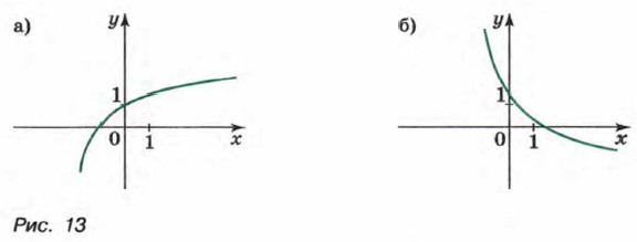 Иными словами, функцию у = ƒ(x) называют возрастающей в некотором промежутке, если для любых х1 и х2 из этого промежутка, таких, что х2 > х1, выполняется неравенство ƒ(x2) > ƒ(x1); функцию у = ƒ(x) называют убывающей в некотором промежутке, если для любых х1 и х2 из этого промежутка, таких, что х2 > х1, выполняется неравенство ƒ(x2) < ƒ(x1). Если функция возрастает на всей области определения, то ее называют возрастающей функцией, а если убывает, то убывающей функцией. На рисунке 13 изображены графики возрастающей функции и убывающей функции. Выясним, какими свойствами обладают некоторые изученные ранее функции.