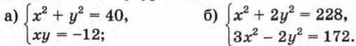 521. При каком значении а окружность (х - а)2 + (у - 3)2 = 16 проходит через точку: а) А(2; 3); б) В(7; -1); в) С(-2; 7); г) D(1; 5)? 522. Найдите целые решения уравнения: а) х2 -у2 = 5; б) х2 - у2 = 8. 523. Решите графически систему уравнений: