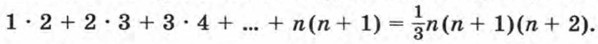 Допустим, что утверждение верно при n = k, т. е. сумма 13k + 5 кратна 6, и докажем, что из этого следует его справедливость для n = k + 1, т. е. сумма 13k + 1 + 5 также кратна 6. Имеем 13k + 1 + 5 = 13k • 13 + 5 = 13k(12 + 1) + 5 = 13k • 12 + (13k + 5). В полученной сумме каждое слагаемое кратно 6. Значит, сумма 13k + 1 + 5 при любом натуральном k кратна 6. В силу принципа математической индукции утверждение доказано. Упражнения662. Проверьте, что при n = 1, 2, 3 верна формула