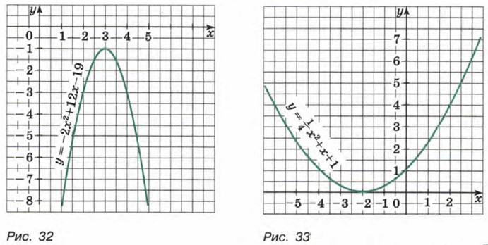 Найдите координаты вершины параболы. Наметив на координатной плоскости вершину параболы и ее ось симметрии, изобразите схематически график. 122. Постройте график функции у = -х2 + 2х + 8 и найдите, используя график: а) значение функции при х = 2,5; -0,5; -3;