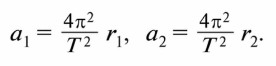 Приравняв полученные для ускорений выражения, выразив из них r1, и r2 и сложив их почленно, получаем: