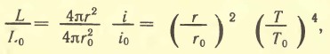 где r — радиус звезды, i — излучение единицы поверхности звезды, r0, i0, Т0 относятся к Солнцу, a L0 = 1. Отсюда