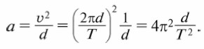Можно убедиться и в том, что при движении планет, в соответствии с третьим законом Кеплера, их ускорение и действующая на них сила притяжения Солнца обратно пропорциональны квадрату расстояния, как это следует из закона всемирного тяготения. Действительно, согласно третьему закону Кеплера отношение кубов больших полуосей орбит d и квадратов периодов обращения Т есть величина постоянная: