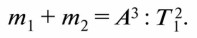 где m1 и m2 — массы компонентов звёздной пары; М1 и М2 — массы Солнца и Земли; Т1 — период обращения звёзд; Т2 — период обращения Земли; А — большая полуось орбиты двойной звезды; а — большая полуось земной орбиты. Выражая период обращения в двойной системе Т в годах (периодах обращения Земли), большую полуось орбиты в а. е. (расстояниях между Солнцем и Землёй), получаем суммарную массу системы в массах Солнца: