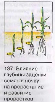 Посев семянЗнание условий, необходимых для прорастания семян каждой культуры, помогает правильно и в срок провести посев. Сначала зародыш питается запасами веществ, отложенных в клетках эндосперма или самого зародыша. Из семени с большим запасом питательных веществ развивается сильный проросток. Во время роста проросток полностью использует запасные питательные вещества семени. Поэтому для посева надо брать полновесные, крупные семена с живым зародышем. Подготовленные к посеву семена высеваются в разные сроки. Семена холодостойких растений (пшеница, овес, ячмень, горох) прорастают при низкой температуре и обилии влаги. Их высевают ранней весной. Семена теплолюбивых растений (кукуруза, фасоль, огурцы, тыква, дыня, томат) следует высевать, когда почва достаточно прогреется. Однако с посевом семян запаздывать тоже нельзя. Весной почва быстро высыхает. Поэтому опоздание с посевом семян может снизить урожай. Недаром говорят, что весенний день год кормит.