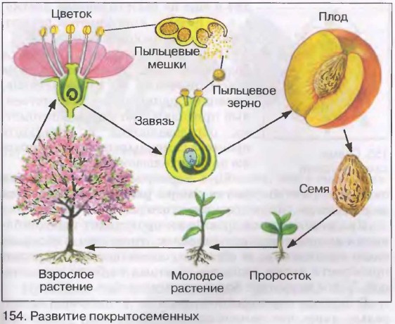 Жизнь растений § 44. Половое размножение покрытосеменных растений (продолжение)Образование семян и плодовОбразовавшаяся при слиянии гамет зигота делится на две клетки. Каждая из возникших при этом клеток снова делится и т. д. В результате многократных делений клеток развивается многоклеточный зародыш нового растения [154].