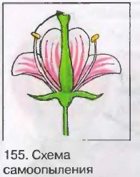 При самоопылении пыльца из тычинки попадает на рыльце пестика того же самого цветка [155]. Так опыляются пшеница, рис, овес, ячмень, горох, фасоль, хлопчатник. Самоопыление у растений чаще всего происходит в еще не раскрывшемся цветке, т. е. в бутоне, когда цветок раскроется, оно уже закончено. При самоопылении сливаются половые клетки, образовавшиеся на одном растении и, следовательно, имеющие одинаковые наследственные признаки. Вот почему потомство, образовавшееся в результате процесса самоопыления, очень похоже на родительское растение. При перекрестном опылении пыльца с тычинок цветка одного растения переносится на рыльца пестиков цветка другого растения [156].