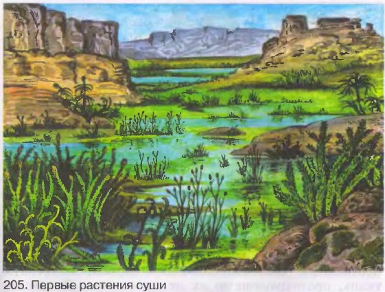 Растения, размножавшиеся семенами, лучше приспособились к жизни на суше, чем растения, размножавшиеся спорами. Это связано с тем, что возможность оплодотворения у них не зависит от наличия воды во внешней среде. Особенно явно превосходство семенных растений над споровыми проявилось, когда климат стал менее влажным. Покрытосеменные растения появились на Земле около 130 млн лет назад. Покрытосеменные оказались наиболее приспособленными к жизни на суше растениями. Только у покрытосеменных имеются цветки, их семена развиваются внутри плода и защищены околоплодником. Покрытосеменные быстро расселились по всей Земле и заняли все возможные места обитания. Уже более 60 млн лет покрытосеменные растения господствуют на Земле. Приспособившись к различным условиям существования, покрытосеменные создали разнообразный растительный покров Земли из деревьев, кустарников и трав. Новые понятия ПАЛЕОНТОЛОГИЯ. ПАЛЕОБОТАНИКА. РИНИОФИТЫ Ответьте на вопросы 1. На основании каких данных можно утверждать, что растительный мир развивался и усложнялся постепенно? 2. Где появились первые живые организмы? 3. Какое значение имело появление фотосинтеза? 4. Под влиянием каких условий древние растения перешли от водного образа жизни к наземному? 5. Какие древние растения дали начало папоротниковидным, а какие — голосеменным растениям? 6. В чем преимущество семенных растений перед споровыми? 7. Сравните голосеменные и покрытосеменные растения. Какие особенности строения обеспечили преимущество покрытосеменным растениям? Задания для самостоятельной работы Летом исследуйте крутые берега рек, склоны глубоких оврагов, карьеров, куски каменного угля, известняка. Найдите окаменевшие древние организмы или их отпечатки. Зарисуйте их. Постарайтесь определить, к каким древним организмам они принадлежат. Дополнительный материал Самый древний отпечаток цветков растения был найден в штате Колорадо (США) в 1953 г. Растение было похоже на пальму. Возраст отпечатка 65 млн лет. Некоторые формы древних покрытосеменных: тополя, дубы, ивы, эвкалипты, пальмы — сохранились и в настоящее время.
