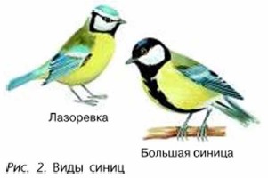 Каждый вид живых организмов можно описать совокупностью характерных черт, свойств, которые называют признаками. Признаки, с помощью которых можно отличить один вид от другого, называют критериями вида. Организмы одного вида сходны, а разные виды различаются по признакам внешнего и внутреннего строения, жизнедеятельности, размножения, развития, поведения, распространения, местообитания, образа жизни. Наиболее заметный признак вида — сходство внешнего и внутреннего строения организмов (морфологический критерий). Рассмотрите виды синиц (рис. 2). Без особого труда можно заметить их внешние различия.
