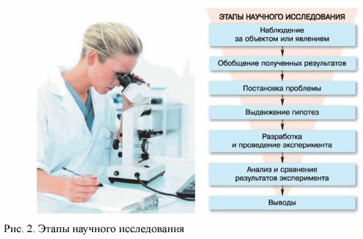 Введение § 2. Методы исследования в биологии (окончание)Этапы научного исследованияОбычно научное исследование начинается с наблюдения над объектом или явлением. После обобщения полученных в результате данных выдвигаются гипотезы (предположения), которые могут объяснить наблюдения (рис. 2).