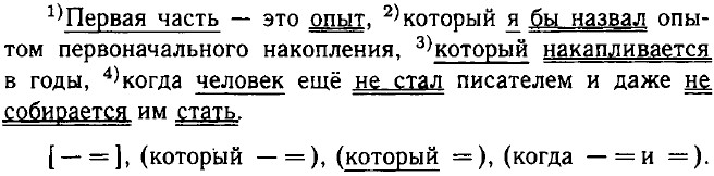 Предложение сложноподчинённое, повествовательное, невосклицательное, состоит из 3 частей. Главное предложение 1) и придаточные 2), 3). Придаточные предложения связаны между собой последовательным подчинением. Придаточное предложение 2) относится к сказуемому главного предложения и присоединяется с помощью союза когда, придаточное предложение 3) относится к дополнению то придаточного предложения 2) и присоединяется союзным словом что. Придаточное 2) — определительное, придаточное 3) — изъяснительное. 1) — простое, двусоставное, распространённое, полное, осложнено причастным оборотом; 2), 3) — простые, двусоставные, распространённые, полные, осложнены однородными дополнениями.