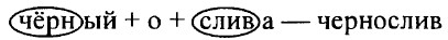 3. Приставочный способ. 1. Начальная форма — чернослив. 2. Значение слова — «сушёные плоды сливы с чёрным окрасом». Слово образовано от сложения прилагательного «чёрный» и существительного «слива» с помощью соединительной гласной О.