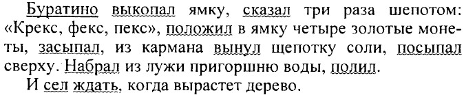Упр. 677 (659). Речевой недочет — повтор. Улучшим сочинение, опустив в некоторых предложениях указание на лицо. В воскресенье я встал рано. Быстро позавтракал и сел за уроки. И вдруг увидел, что ребята начали играть в хоккей. Я уже собрался пойти к ним, но вовремя остановился. После этого принялся заниматься еще усерднее и, наконец, выполнил все задания. И вот я свободен и бегу к друзьям. Упр. 678 (660). Тема отрывка — Буратино сажает монеты в землю. Тип речи — повествование, стиль — художественный.