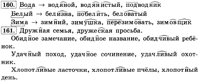 Упр. 162 Заголовок — Семейство корня -уч-. Жил-был корень — -уч-. И вот надоело ему одному жить на свете, и призвал он приставки и суффиксы объединяться с ним. Прошло время, и превратился маленький- премаленький корень-корешок -уч- в огромное семейство слов.