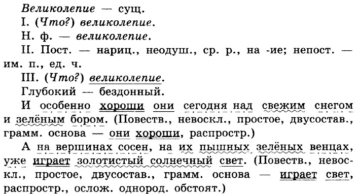 Упр. 328 Зимой в вечернем лесуВ декабре, если небо закрыто тучами, странно смеркается в хвойном лесу, почти страшно: небо наверху становится ровно лиловым, свисает, опускается и торопит спасаться, а то в лесу скоро начнется свой, нечеловеческий порядок. Мы поспешили домой обратно по своей утренней дорожке и увидели на ней свежий заячий след. Это значило, что зайцы, у которых день наш считается ночью, а ночь — их трудовой день, встали с лежки и начали ходить. Страшное лиловое небо в сумерках им было, как нам радостная утренняя заря. (По М. Пришвину) Зайцы — сущ. I. (Кто?) зайцы
