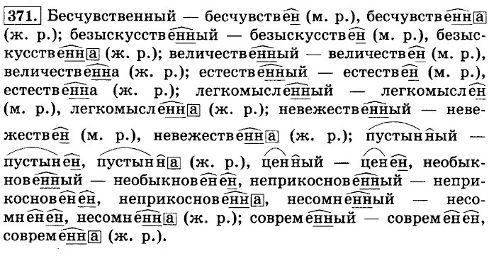 Имя прилагательное Одна и две буквы н в суффиксах прилагательных (окончание)Упр. 370 1. Орлиный, овсяный, кожаный, торфяной, песчаный, костяной, осиный, багряный. 2. Революционный, восторженный, деревянный (искл.), обеденный, экскурсионный, стеклянный (искл.), письменный, авиационный, производственный, обыкновенный. Юный и румяный — нет суффикса, н в корне. Способы образования: прист., прист.-суф.
