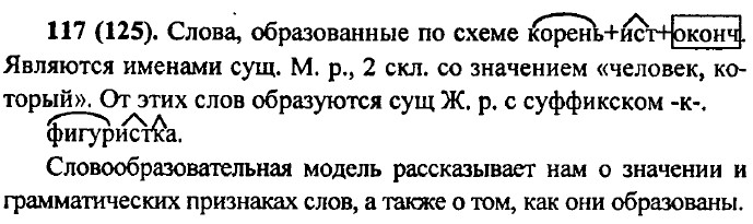 Упр. 112 (120). Сложение без соединительной гласной → соцпакет. Сложение с соединительной гласной → землетрясение. Сложение с одновременным присоединением суффикса → мясорубка. Упр. 113 (121). Тот, кто — игрок, ездок, стрелок. Уменьшительно-ласкательное значение — вечерок, бугорок, язычок, холодок, ледок, шнурок, уголок, сынок, сахарок, ветерок. Порог, рынок, хлопок, песок. Упр. 114 (122). Собака — собачка — собачонка. -к- — уменьшительно-ласкательный суффикс. -онк- — пренебрежительный. Упр. 115 (123). Запись показывает, как из слова добрый появилось слово добряк, а из слова добряк — слово добрячка. Так же рассматриваются слова гитаристка и водянистость. Упр. 116 (124).