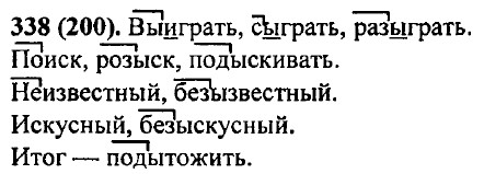Упр. 339 (201). Сыграть вничью, безынициативный игрок, сверхинициативный нападающий, неизвестный камень, подытожить результаты, сверхискусный мастер, подыскивать работу, безымянный герой, перечислить поимённо, безызвестный игрок. Упр. 340 (202). Инициатива: неинициативный, безынициативность. Интерес: преинтересный, безынтересный. Искать: соискательница, обыскать. История: доисторический, предыстория. Искусственный: неискусственный, безыскусственный.