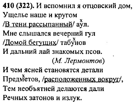 Причастие § 35. Причастный оборотУпр. 407 (319). Чуть слышится ручей, бегущий в сень дубравы, чуть дышит ветерок, уснувший на листах. Косой дождь, гонимый сильным ветром, лил как из ведра. Охотник устроился на большом камне, окружённом шумно плещущей, стремящейся по каменистому дну водой. Одинокий самолёт, плывущий на головокружительной высоте, кажется миноносцем, наблюдаемым со дна моря. Уже вечерело, солнце скрылось за небольшую осиновую рощу, лежавшую в полверсте от сада. Грянул гром — тучи дрогнули, охваченные синим огнём.