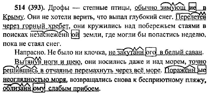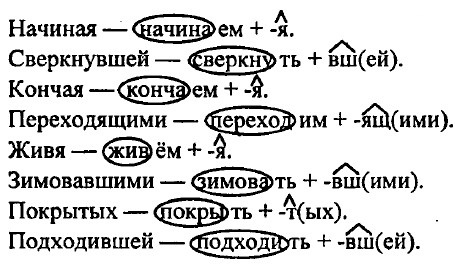 Упр. 517 (396). От основы глагола настоящего времени образуются действительные и страдательные причастия настоящего времени (действующий, кричащий, ведомый, гонимый) и деепричастия несовершенного вида (крича, неся). От основы инфинитива образуются действительные и страдательные причастия прошедшего времени (работавший, умерший, приготовленный, закопанный, поднятый) и деепричастия совершенного вида (сделав, сделавши, увлекшись).