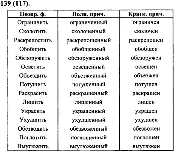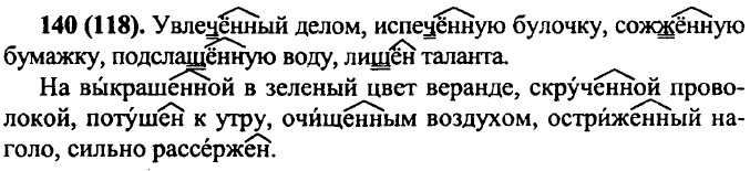143 (121). Отшлифованные прибоем камни, разъяренные волны; не раскатывающийся, а рокочущий гром; непрекращающийся ливень; очищенные воздухом; вызолоченные перелески; намагничиваемый металл; выращенный урожай; посеянная рожь; испеченный черный хлеб; обрабатываемое поле. Испеченный бабушкой черный хлеб гораздо вкуснее, чем тот, который продается в магазине. Разъяренные волны свирепо набрасывались на причал, и буря выбрасывала на берег отшлифованные прибоем камни. 143 (с). На классном часу, распределив обязанности, мы договорились выйти на уборку в субботу утром. Наши ребята копали ямы, высаживая затем в них деревца. Девочек, подготовивших клумбу для цветов, отпустили раньше. Преодолевая усталость, мы сажали деревья. Наш класс закончил свою часть работы очень быстро, обогнав старшеклассников. Возвращаясь домой, мы чувствовали радость. Школьников, участвовавших в уборке двора, поблагодарили на общешкольной линейке.
