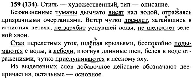 161 (136). 1. Открыв (сов. в.) окно, я залюбовался видом города. 2. Открывшись (сов. в.), дверь громко скрипнула. 3(c). Мама сидела, откинувшись (сов. в.) на спинку стула. 3(4). Брат, склонив (сов. в.) голову набок, что-то писал. 4(5). Заканчивая (несов. в.) чертеж, я сломал карандаш. 5(6). Возвращаясь (несов. в.) домой, я попал под дождь. 6(7). Разложив (сов. в.) игрушки на диване, дети начали какую-то интересную игру. 7(8). Кое-кто из малышей, занявшись (сов. в.) рисованием, не хотел идти на обед. 8(9). Прочитанный рассказ показался мне слишком фустным.