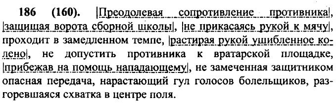 187 (161). Сочинение по картине С. Григорьева «Вратарь» Перед нами картина «Вратарь». Мне кажемся, что изображенные события происходят ранней осенью. Свет солнца на картине осенний, и трава уже смята, притоптана и немого пожухла. Летние каникулы уже кончились — ребята играют в футбол, скорее всего после школы. Об этом нам говорят портфели, которые служат воротами. Интереснее всего рассматривать главного героя картины — мальчика-вратаря. Видно, что он страстно увлечен футболом и старается подражать взрослым, настоящим футболистам. Даже сумел раздобыть где-то кожаные перчатки, подобные вратарским. Нога его перебинтована под коленкой — может быть, чтобы не растянуть связки, а может, у парня уже была травма, ведь он отдает занятиям спортом много времени и сил. Он принял вполне профессиональную стойку, слегка согнув ноги в коленях и положив на них ладони. Он напряжен, его взгляд прикован к мячу. Сейчас, наверное, самый важный момент игры — это мы видим и по лицам зрителей. Мальчик помладше, который стоит за спиной вратаря и ловит мячи, смотрит на вратаря с уважением. Он гордится тем, что может ему помочь. Наверное, малыш хочет стать таким же ловким и отважным, как его старший товарищ. Картина написана давно, в послевоенное время, но до сих пор интересна нам, потому что верно передает накал спортивных страстей и характеры ребят-футболистов.