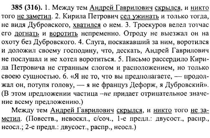 386 (317). 1. Я не могу ответить на это письмо. Я могу не ответить на это письмо. Я не могу не ответить на это письмо. 2. Товарищ сегодня не может приехать ко мне. Товарищ сегодня может не приехать ко мне. Товарищ сегодня не может не приехать ко мне. 3. Вы не можете посмотреть эту передачу. Вы можете не посмотреть эту передачу. Вы не можете не посмотреть эту передачу. (Частица -не придает положительный смысл в третьем предложении каждого варианта.) 387 (318). 1. Солнце не огнистое, не раскаленное, как во время знойной засухи, не тускло-багровое, как перед бурей, но светлое и приветливо-лучезарное, мирно всплывает из-под узкой и длинной тучки... 2. Я не мог заснуть не потому, что не устал от охоты, и не потому, что испытанная мною тревога разогнала мой сон, а уж очень красивыми местами приходилось ехать. 3. Нигде не мерцал огонек, не слышалось ни звука. В 1-м и 2-м предложениях противопоставление выражено с помощью союзов но и а. Я не хотел туда ехать не потому, что лил дождь, а потому что не было времени. Раскалённое — причастие I. Солнце (какое?) раскалённое