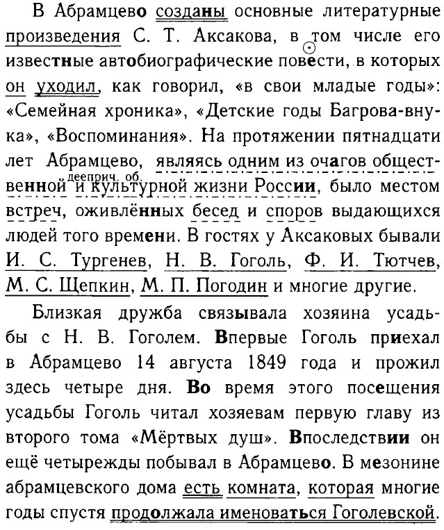 Вопросный план текста. 1. Какому знаменитому русскому писателю принадлежало имение Абрамцево? 2. Какие знаменитые люди посещали Абрамцево на протяжении пятнадцати лет? 3. Какое произведение читал Гоголь во время своего пребывания в имении? Лавра — название некоторых крупных православных мужских монастырей.