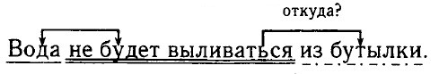 1. Повествовательное. 2. Невосклицательное. 3. Грамм, основа — вода не будет выливаться, двусоставное. 4. Распространённое, неосложнённое. 5. Члены предложения: а) подлежащее — вода, сущ., неодуш., нариц., 1-е скл., ж. р., им. п., ед. ч. б) сказуемое — не будет выливаться, составное глагольное, состоит из глагола связки не будет (3-е л., ед. ч., наст, вр., изъяв, накл.) и инфинитива выливаться. в) обстоятельство — из бутылки, сущ. с пред., неодуш., нариц., 1-е скл., ж. р., ед. ч., р. п. Упр. 196